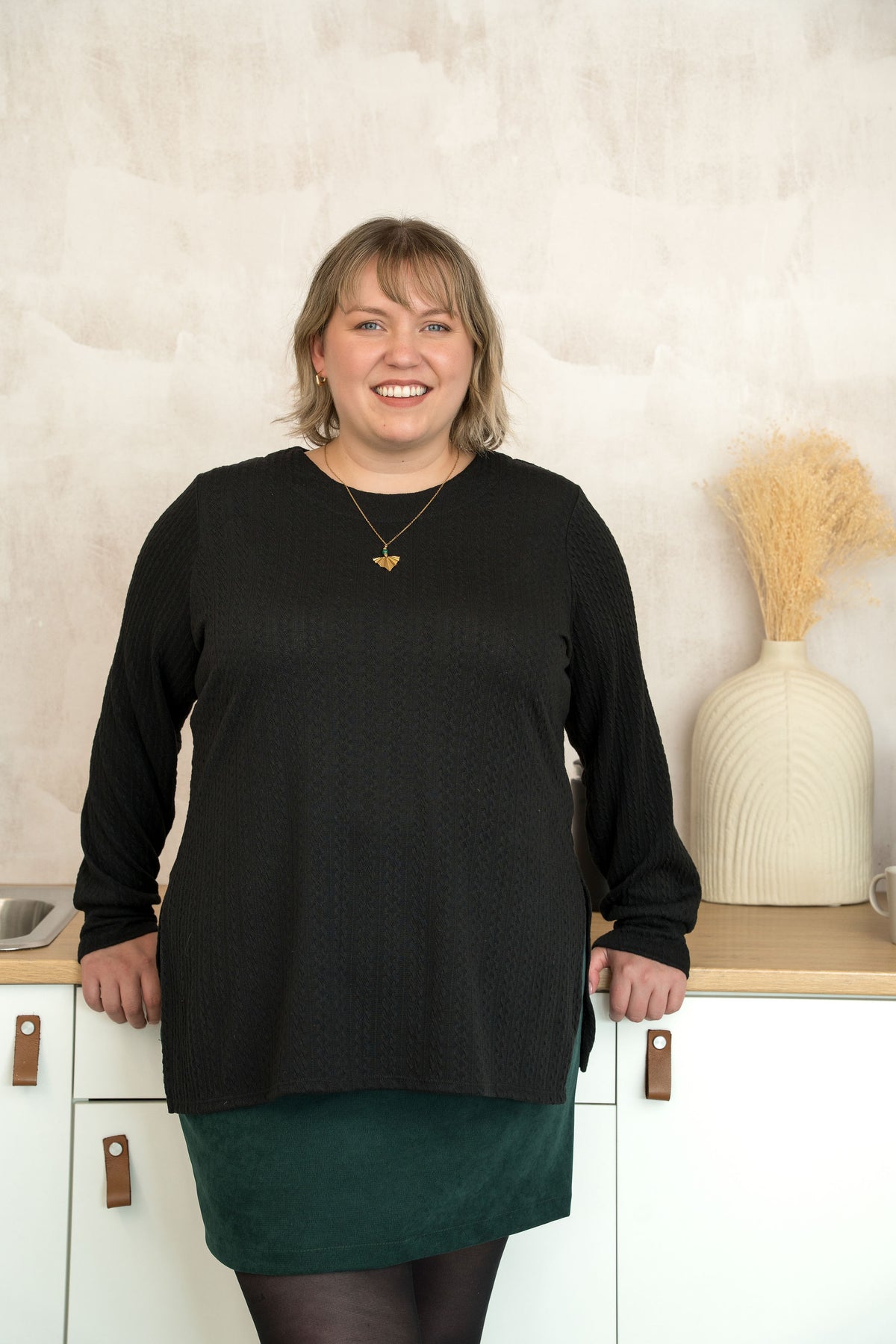 • Détails : encolure ronde, manches bouffantes avec poignets