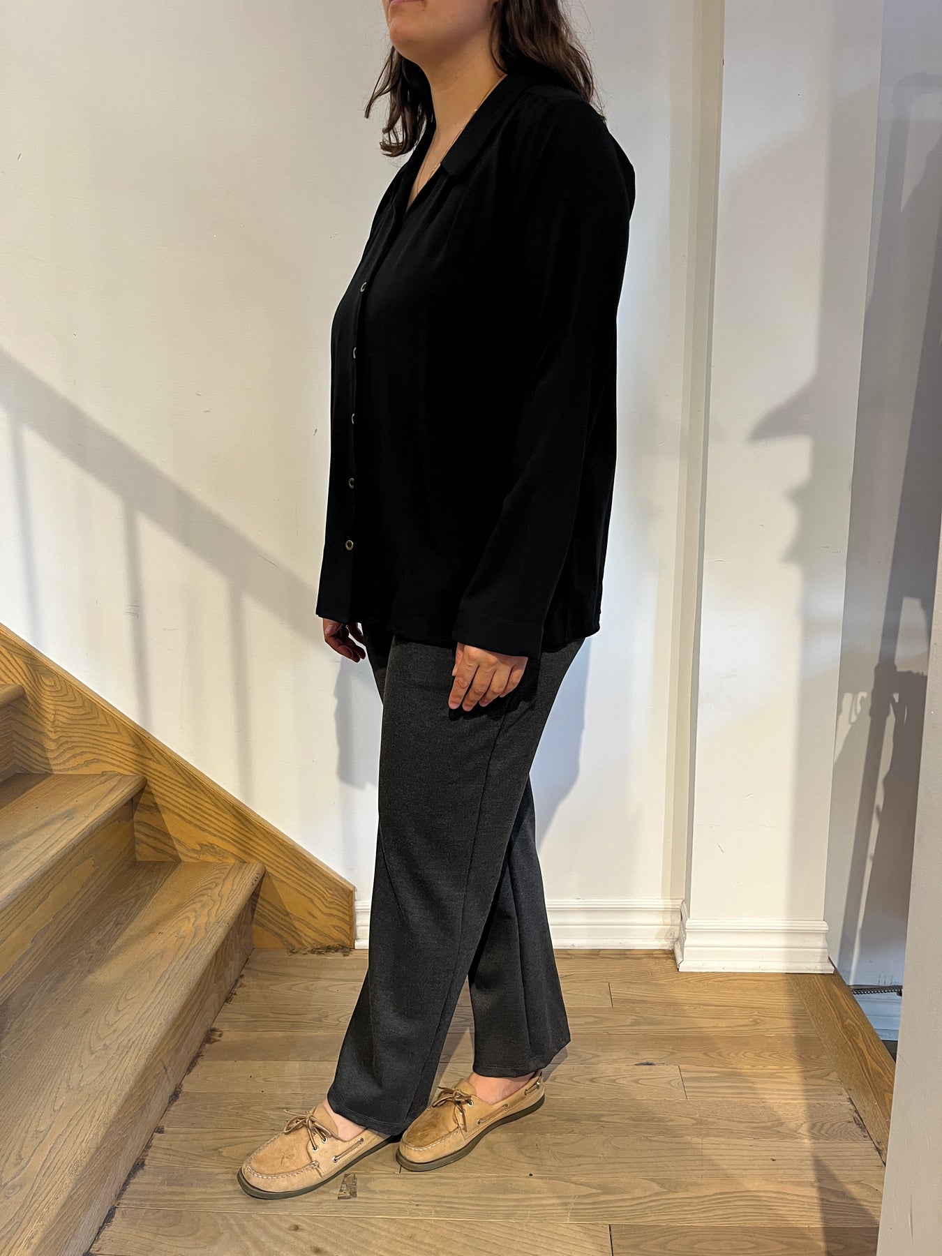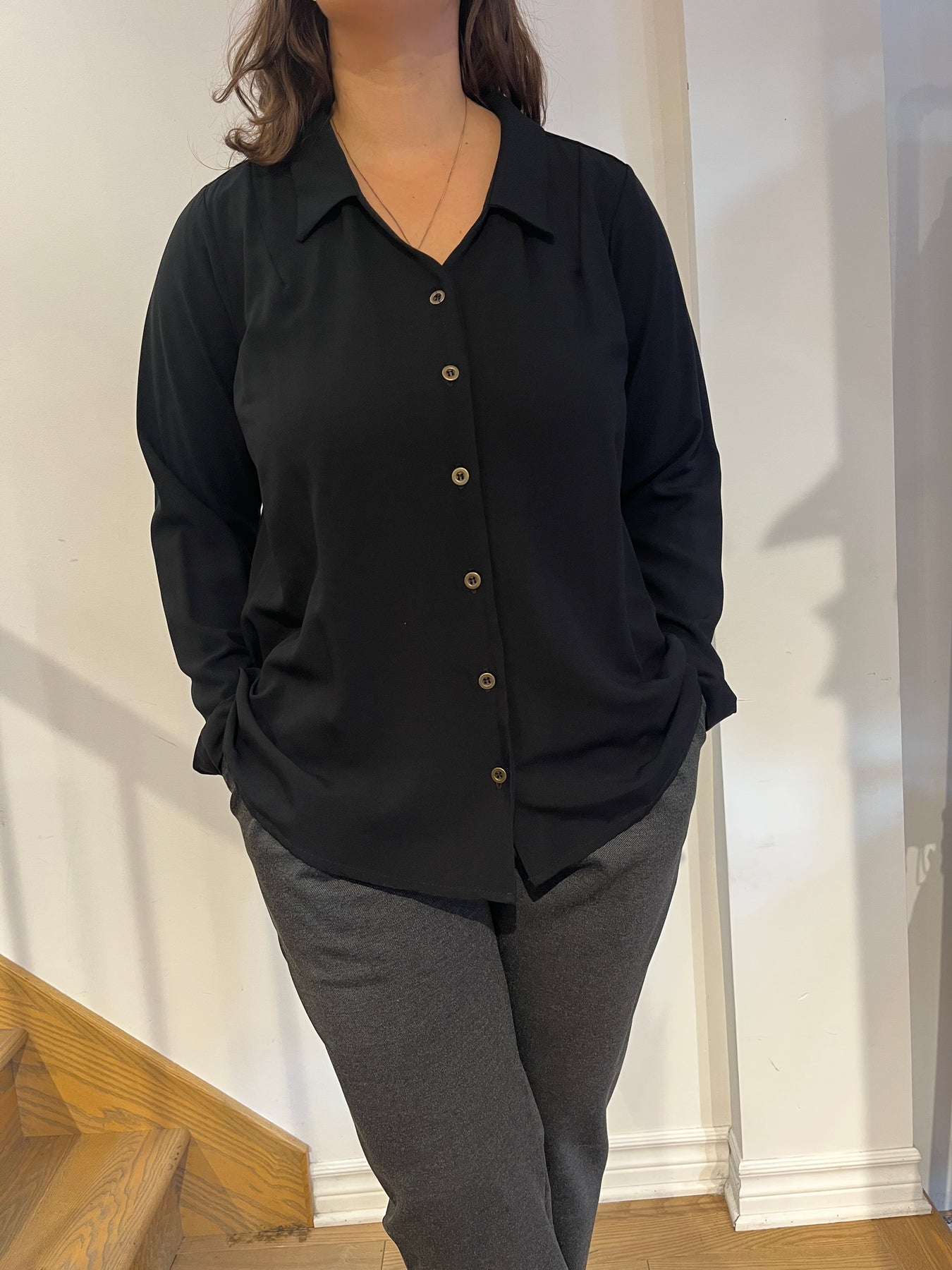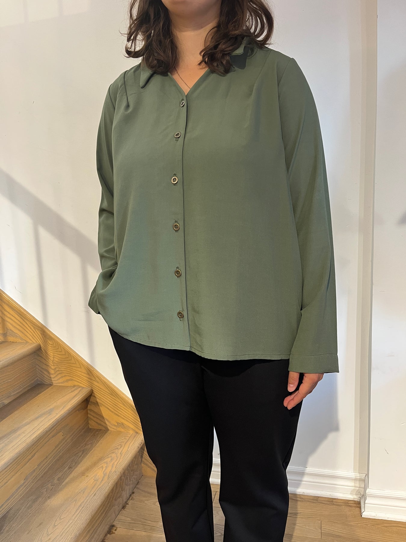 Le chemisier qui s'agence avec tout! Son encolure est plus féminine et légère que les chemisiers traditionnels. Nous avons opté pour un twill fluide qui lui donne du corps tout en bougeant bien. Les boutons couleur 'antique' lui donne un accent rétro.