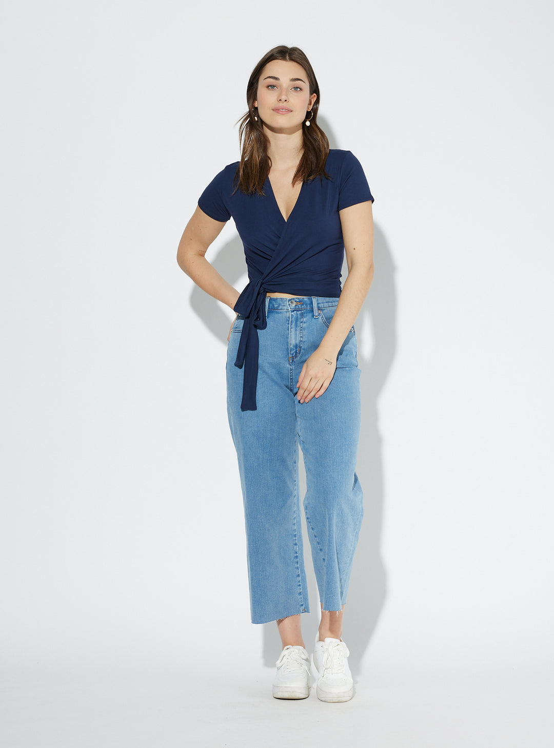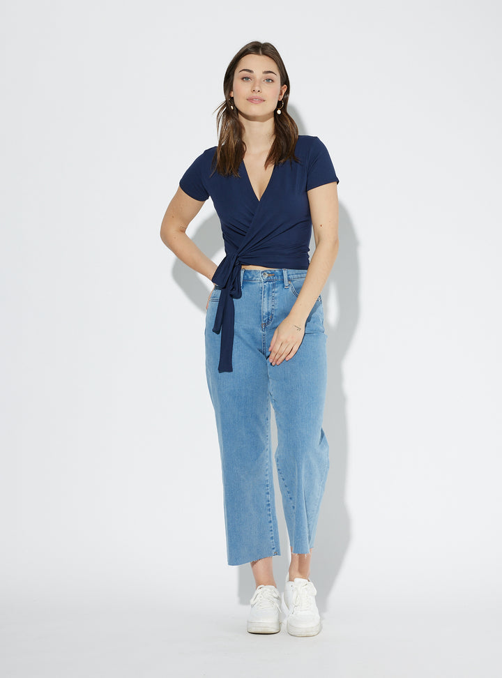 Le haut Hortensia est un 'faux' haut cache-coeur ajusté et court qui vous permettra de multiplier les options d'ensembles dans votre garde-robe. On parle de 'faux' haut cache-coeur car la partie du dessous est complète et cousue. On l'enfile donc comme un chandail et on referme la partie du dessus par la suite. Il fait aussi bien avec une jupe, un pantalon, un jean ou un short. Il peut être mis avec pratiquement tous les bas de la collection. Il se noue au côté et est fait dans notre rayonne de bambou certifiée.