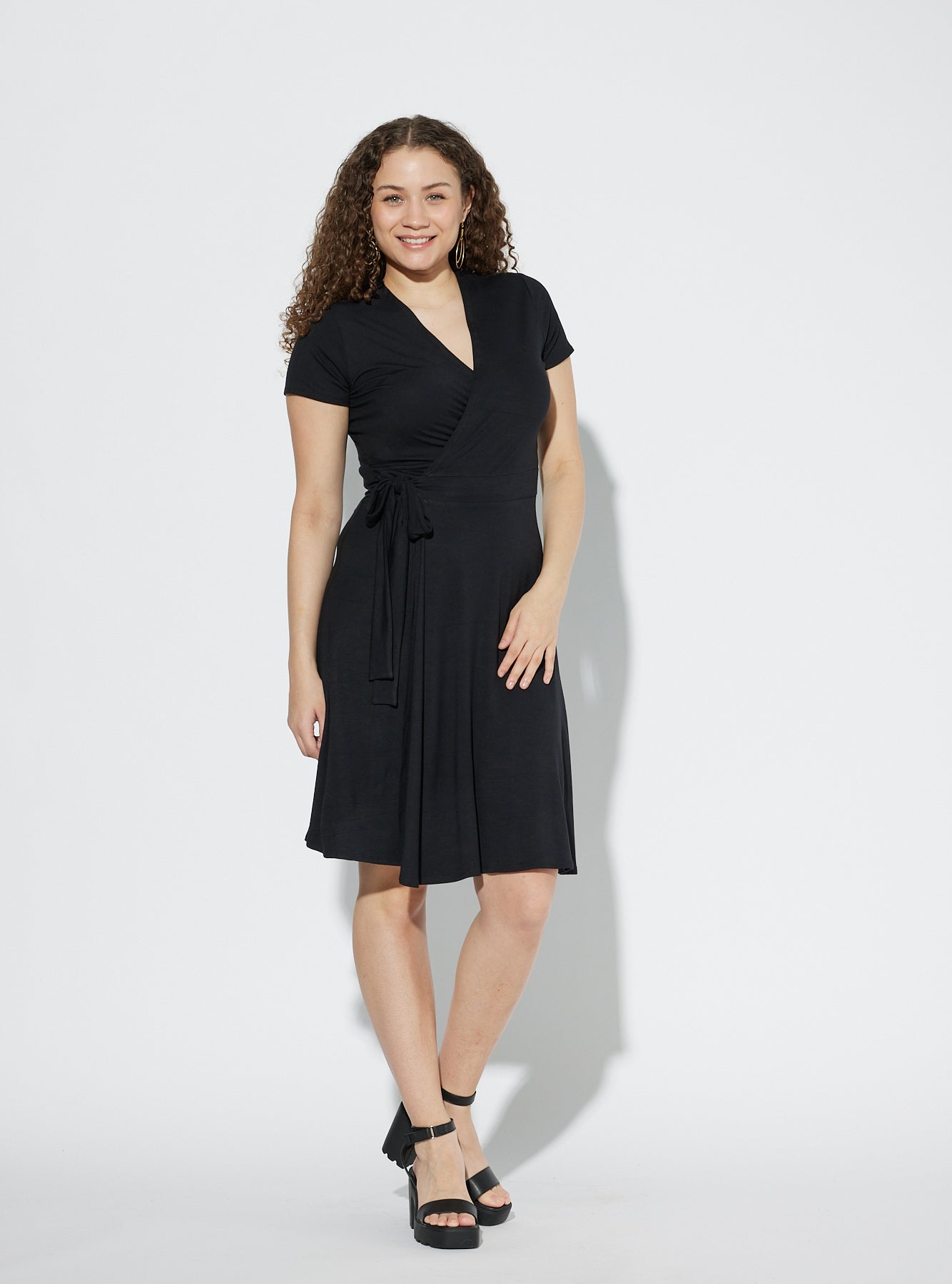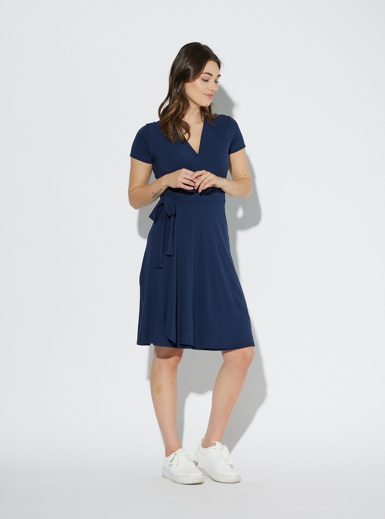 Pour créer la robe Tulipe, nous avons revisité notre robe cache-coeur que vous adorez tant! Nous avons donc créer une robe porte-feuille qui s'attache au côté. La robe est complète sous la partie qui vient s'attacher afin d'éviter tout embarras en croisant les jambes...Vous avez donc le look de la robe porte-feuille tout en étant couverte à 100%.