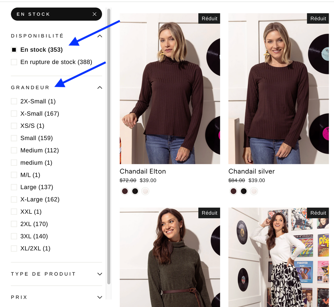 Pour trouver rapidement ce que vous cherchez, utilisez les filtres Ă  gauche pour choisir votre grandeur et voir seulement les produits disponibles.