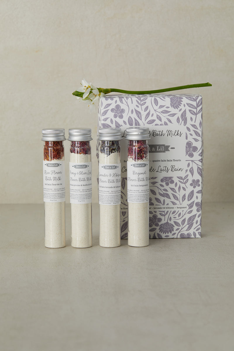 Inspirés par des paquets de semences vintage, ces sachets pour le bain contiennent chacun assez de lait bain pour 1 à 2 usages. Un bain romantique et parfumé, très hydratant, avec des pétales de fleurs. Les jolies illustrations fleuries sur les emballages sont une collaboration spéciale avec l’artiste québécoise Mathilde Cinq-Mars.